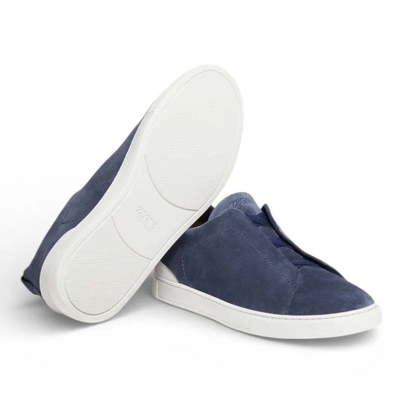 Zegna UTILITY BLUE SUEDE TRIPLE STITCH SNEAKERS